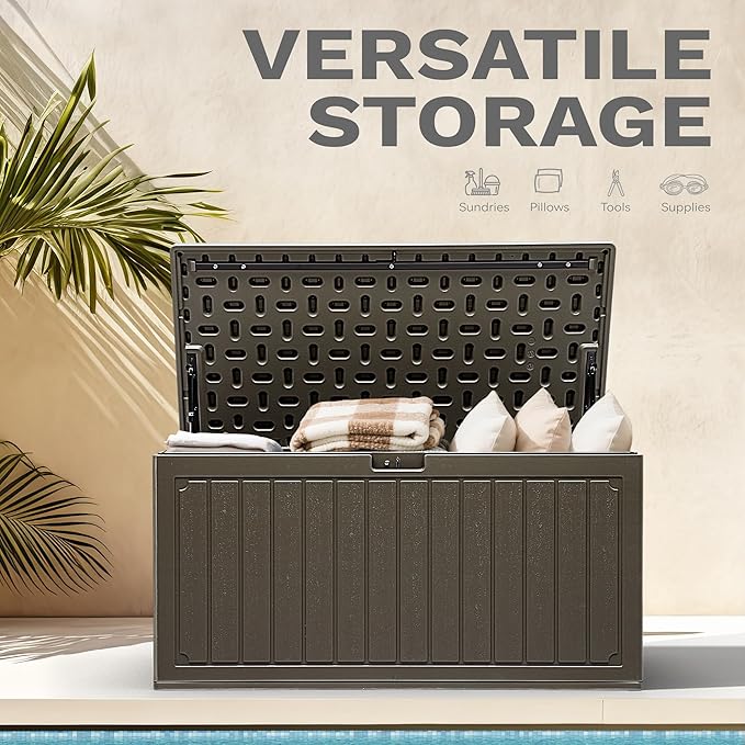 - Multi-Functional Design: Use this outside storage box as a table or bench, comfortably seating up to 450 lbs (approximately 3 people); It ideally complements any patio or garden, helping to organize your tools and supplies