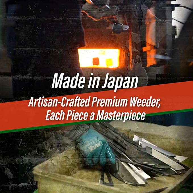 - 【Razor-Sharp Blade】Crafted like a Japanese sword, the high-quality two-layer Japanese carbon steel blade is expertly honed by artisans for outstanding sharpness and durability. It enables swift, precise cuts, removing weeds cleanly from the root with lasting sharpness.