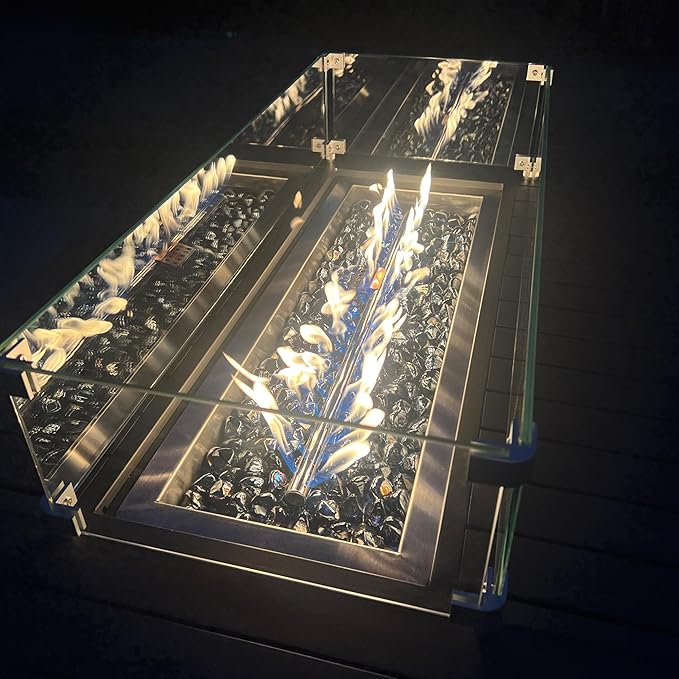 - Modern Features: TWT fire pit is filled with elegant blue glass stones that can complement any outdoor space. Place the removable lid over the burner during the day to use the fire pit as a coffee table, then store it on the side when the fire pit is in use.Safety first! Each table has been tested before reaching our users, just because it's the right thing to do!