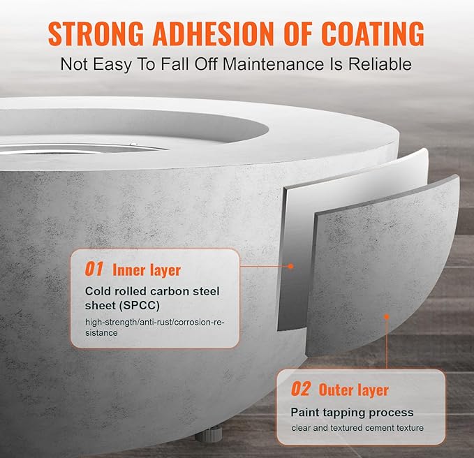 - Sleek Concrete Aesthetic: With a natural concrete-like surface, the outdoor fire pit boasts an elegant design that complements outdoor spaces such as patios and gardens, creating a relaxed and inviting atmosphere for gatherings.