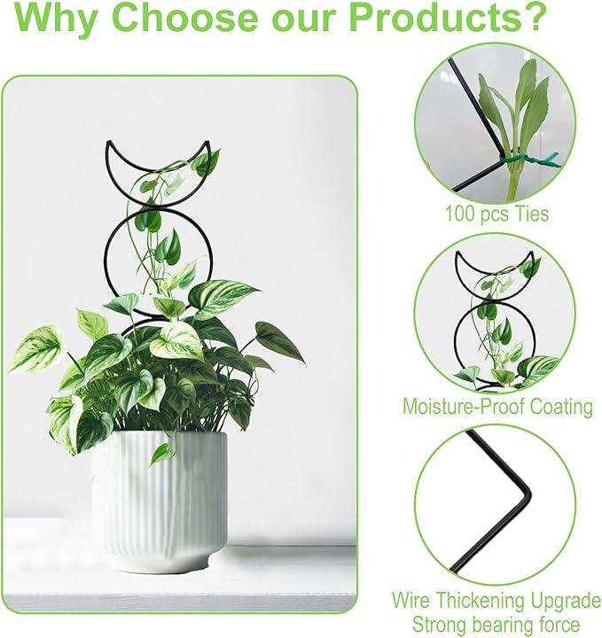 - What You Get: 4 packs black metal trellis for potted plants, 100 pcs ties