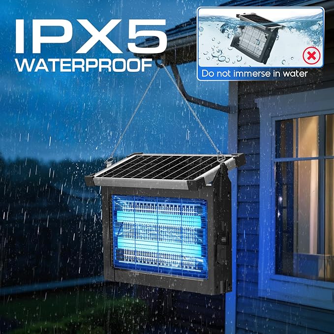 - SMART LIGHT SENSOR & AUTO MODE: Equipped with a smart light sensor, this solar bug zapper outdoor automatically turns on at dusk and off at dawn, offering effortless, hands-free mosquito control. Its intelligent operation ensures energy efficiency while maximizing insect-killing performance. Enjoy your evenings without worrying about switching the fly zapper on and off manually