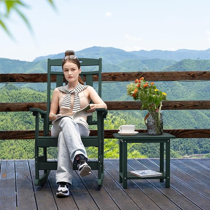 nevilywood Adirondack Square Side Table - 18.4" Large Panel HDPE Outdoor End Table - Weatherproof, Rustproof & Low Maintenance for Patio, Lawn, Pool, Indoor Use (Green)