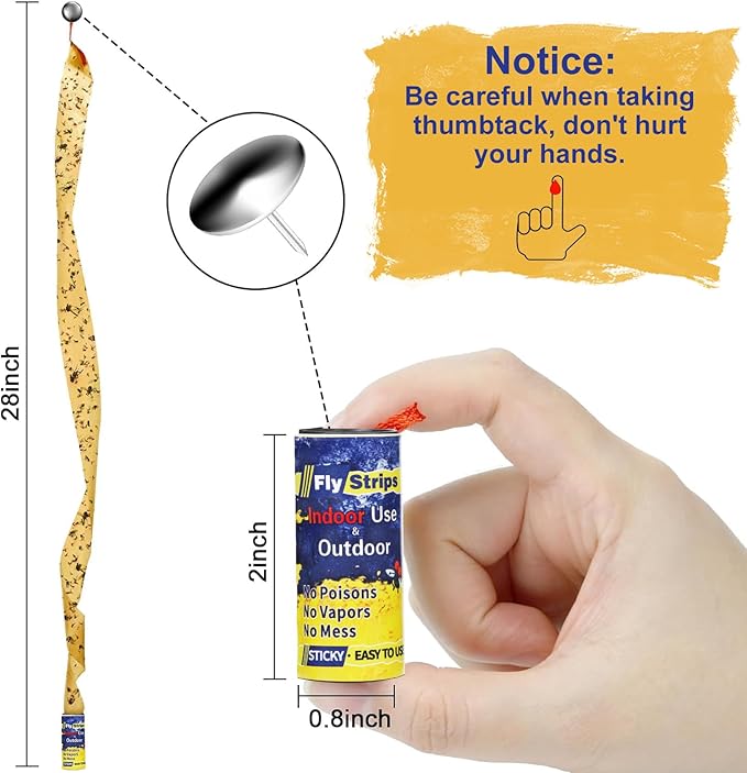 - Waterproof and durable: fly sticky hanging fly strips indoor are waterproof, heat resistant, and long-lasting, making them suitable for all seasons. These two-sided gnat traps effectively capture insects. Exercise caution when pulling the fruit fly traps to avoid breaking the fly paper