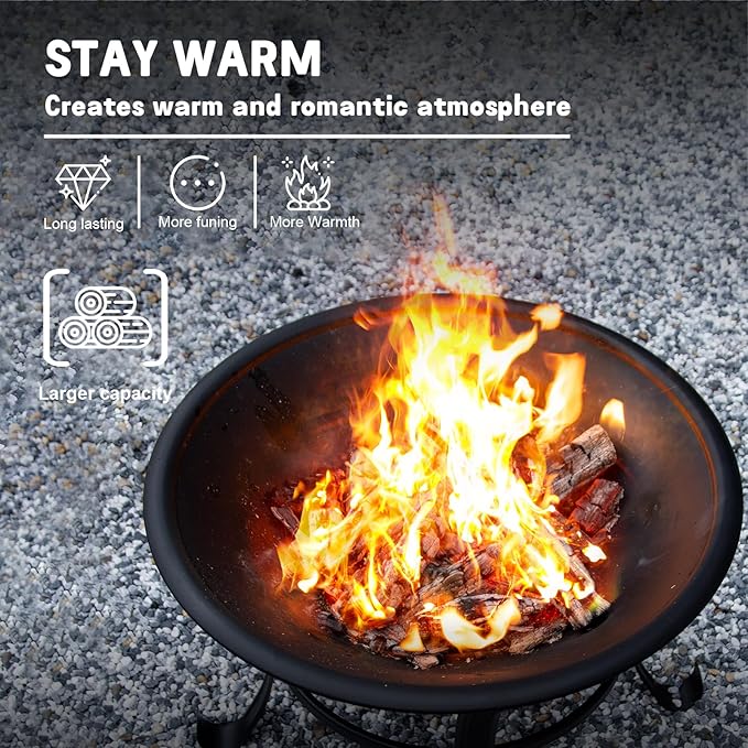 - [Safe & Reliable]: The wood burning firepit equipped with a spark screen, a heavy duty fire poker, and a wood grate, the fire pit for outside is designed for safety. Its elevated legs prevent lawn damage and reduce burn risks, allowing you to enjoy the fire with peace of mind.