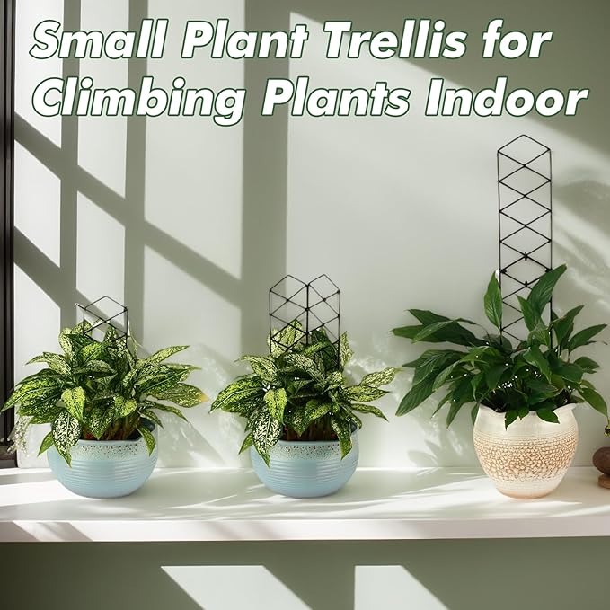 - Great Size for Indoor Pots: Each small trellis measures 16.9" H × 3.9" W, making it ideal for small to medium potted plants. Combine two plant trellis side-by-side (7.8" wide) or stack them to support taller plants - perfect for windowsill, desk, or plant shelf, it brings style to your space.