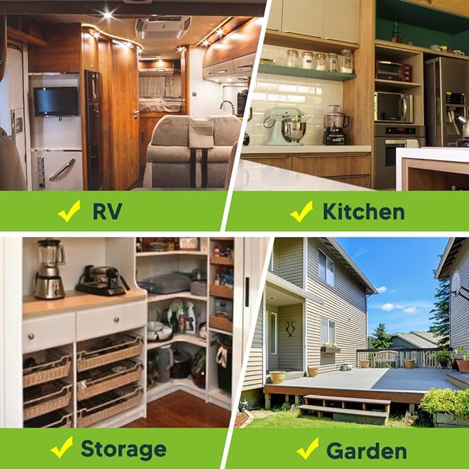 - WIDE APPLICATION: You won't see annoying rodents in your house any more using the product. Perfect for sink, potted plant, closets, pantries, garages, storage units, cars, RV, basements, patio, dormers, attics, boats and any enclosed areas.