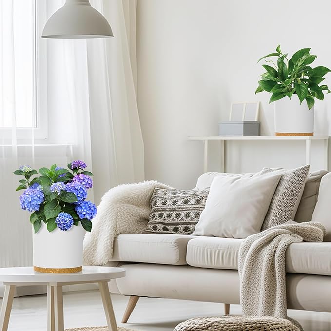 - 【Depth & Large】 8 inch indoor plant pot with Dia: 8 in, Height: 7.8 in, tall plant pots with white with brown provide enough space to accommodate a variety of plants, offering flexibility for small to medium-sized greenery and flowers