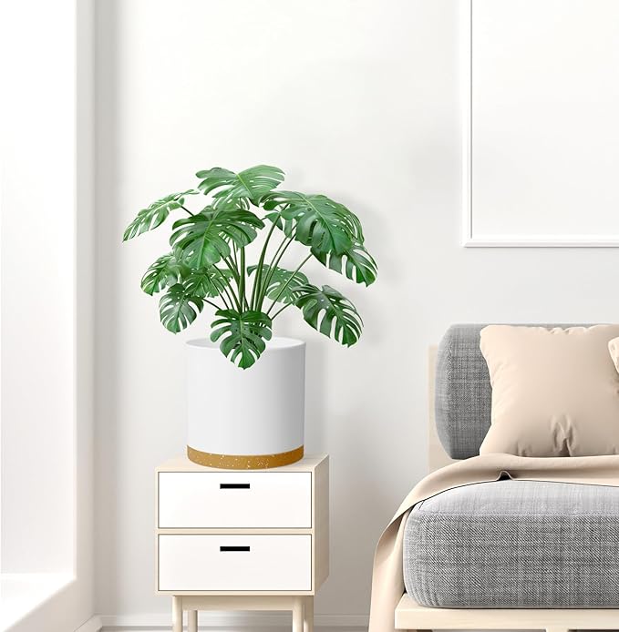 - 【Depth & Large】 10 inch large indoor plant pot with Dia: 10 in, Height: 10.6 in, tall plant pots with white with brown provide enough space to accommodate a variety of plants, offering flexibility for small to medium-sized greenery and flowers