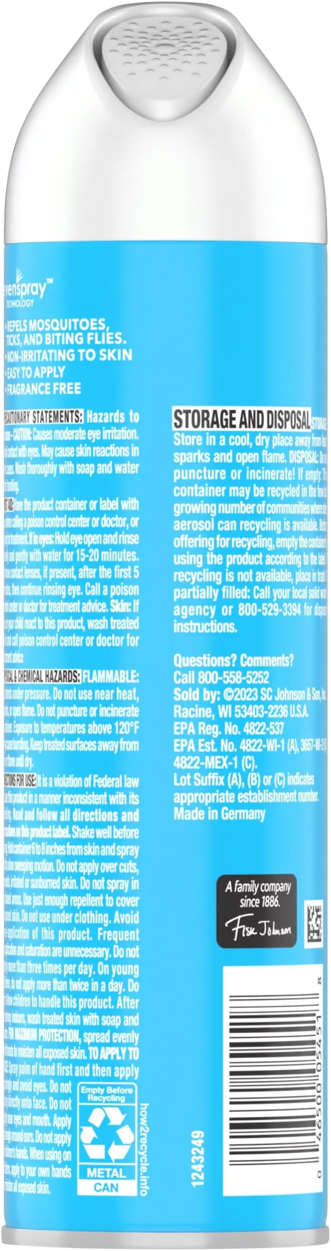 OFF! Insect Repellent Aerosol for Adults & Kids, Fragrance-Free Bug Spray for Everyday Protection from Mosquitoes and Ticks, 7.5 Oz