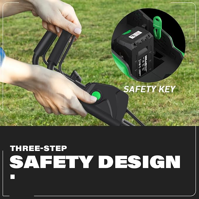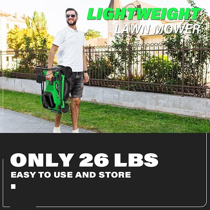 - 【Brushless Motor】 The electric lawn mower features brushless motors that are light in voice and low in vibration. Not only can it provide powerful power, but also without the trouble of noisy and dragging in gas lawn mower, corded lawn mower.