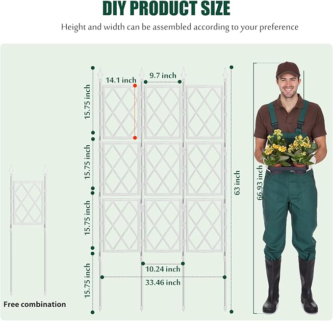 - MULTIPLE COMBINATIONS: Our garden trellis is free to DIY assembly, if you can use more than 2 trellis to form a "plant fence" or to create a "flower wall"; you can also divide a trellis into two small as potted plants climbing.