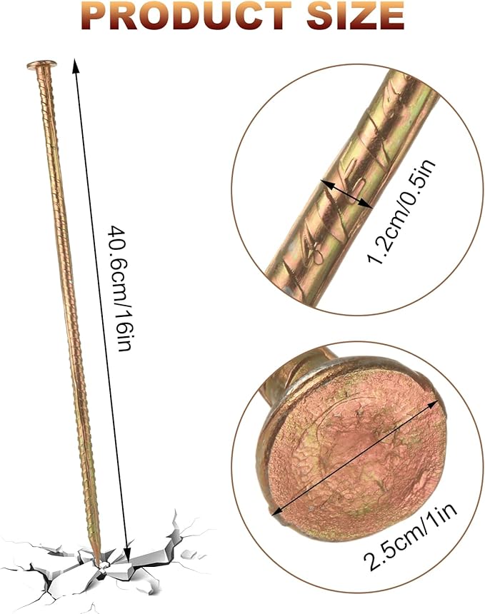 - 【16 inch Rebar Stakes】 The steel pile has a 1-inch top for easy tapping during installation, and the wide top also holds objects firmly in place. When the steel bar pile is wrapped with rope, the rope will not fall off the top of the pile, and the length is 16 inches and the diameter is 1/2 inch, which is suitable for a variety of scenarios