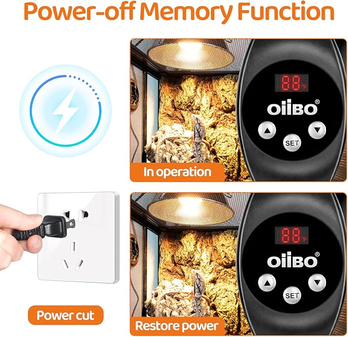 Oiibo Reptile Dimming Thermostat Heat Lamp Temperature Controller, Light Bulb Thermostat with Memory Function, Thermostat for Seed Germination & Heaters