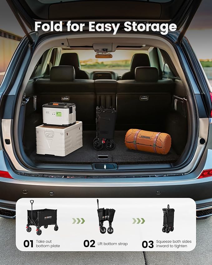 - Easy to Fold and Carry: This collapsible wagon cart easily folds for compact storage, with dimensions of 30.3" x 17.3" x 12.3" when expanded and just 28.3" x 14.6" when collapsed. Weighing only 14.7 lbs, itβs lightweight and portable, making it easy to store in your car trunk or small spaces.