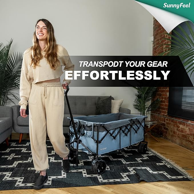 - 【Upgraded Extra-Large Capacity & Cup Holders】The SunnyFeel wagon is built to effortlessly manage heavy loads with its expansive interior and impressive weight capacity. Its enhanced design easily fits camping gear, groceries, or outdoor supplies in one convenient trip, simplifying your transport needs. With a spacious 300L capacity, it delivers dependable performance for tough tasks. Plus, the two mesh cup holders keep your beverages stable and upright