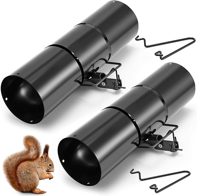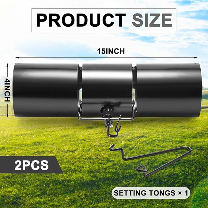 Qualirey Tube Squirrel Trap Rust Resistant Trap 4.5'' in Diameter with a Setting Tongs for Backyards Patios Gardens, Safe and Effective Pest Control Commercial and Residential Use (2 Pcs,15 Inch)