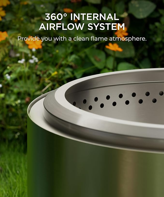 - 【HIGHLY INNOVATIVE SMOKELESS DESIGN】SUNOUTLY 19.7-inch smokeless fire pit offers a clean flame atmosphere with its innovative design and advanced internal ventilation technology. The low smoke fire pit provides just the right amount of warmth and ambience, keeping your campfire experience hassle-free from smoke, watery eyes, or lingering odors. The greatest Christmas present will be this as well.