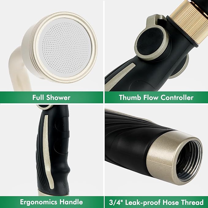 - 【Gentle & Even Water Flow】The aluminum shower head features 585 precision holes to mimic natural rainfall, delivering a soft, even flow that’s gentle on delicate plants, seedlings, and flowerbeds—perfect for thorough soaking without soil disruption.