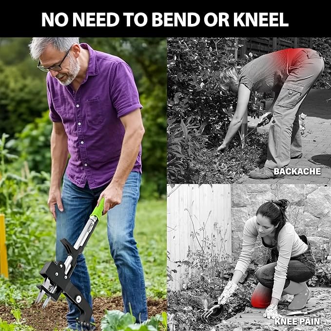 - Efficient Weeding: MAZING Weed Removal Tool is suitable for most users. At the heart of easy weeding is an auto-rebound ejector that deftly pulls out weeds and releases them, efficient and environmentally friendly. Recommend wearing gloves when using.