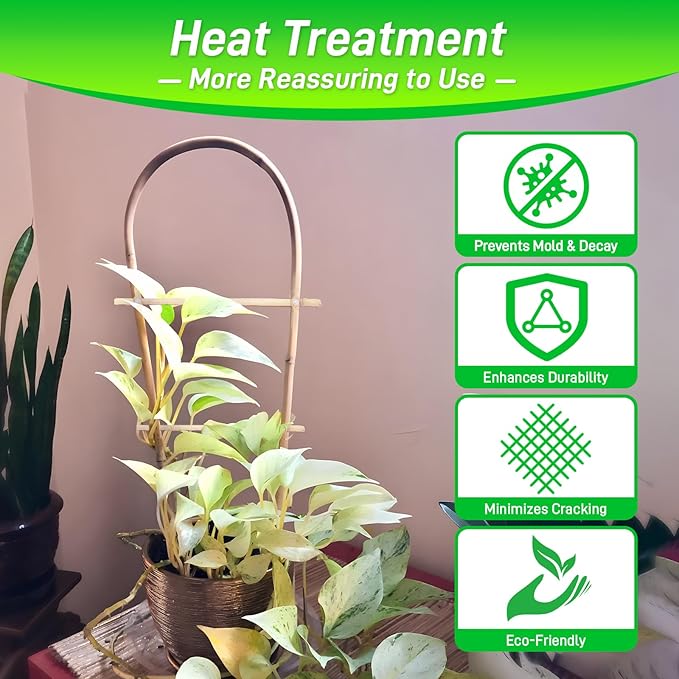 - 【Natural Bamboo】Each bamboo stalk is completely natural, carefully selected, and treated through smoking. Assembled manually, its U-shape design provides ample space for the growth of climbing plants.