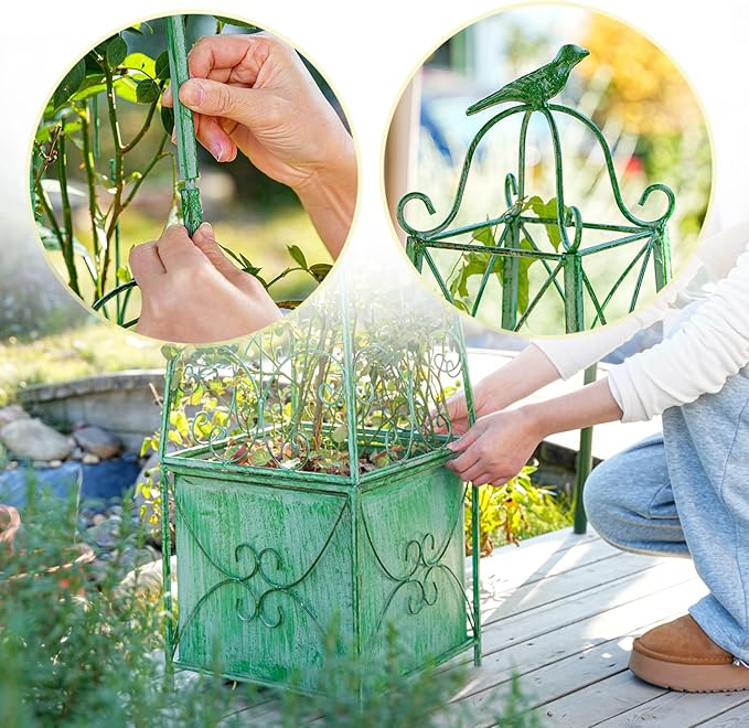 - Elegant Vintage-Inspired Design – Features ornate scrollwork and a charming bird finial, adding rustic elegance to any outdoor space. Great for cottage gardens, farmhouse decor, or French country style.