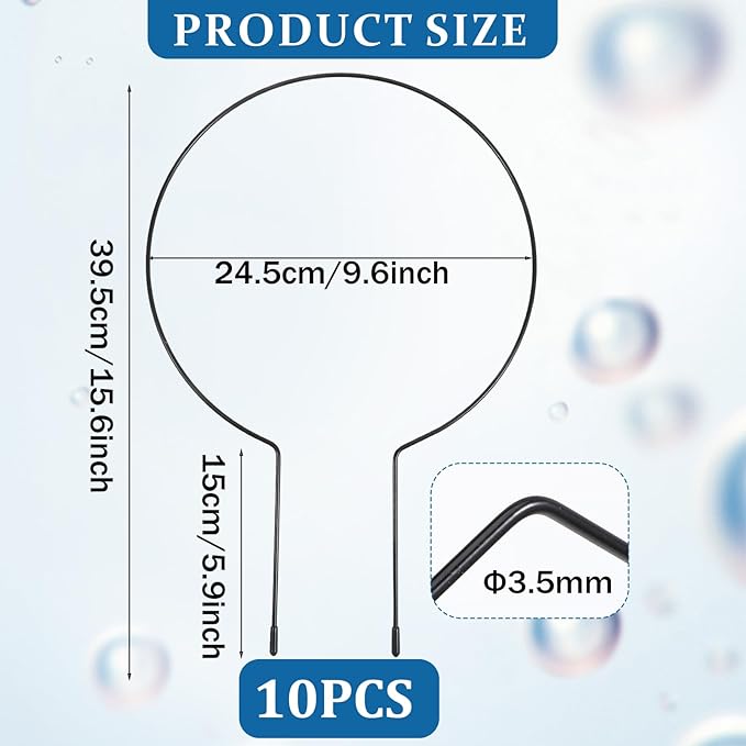- Plant Support: Each round trellis for climbing plants measures 15.6" x 9.6", with a 3.5 mm diameter, making them strong and durable enough to support a variety of climbing plants. This set includes 10 pieces of metal trellises, offering ample support for your garden's growth and ensuring your plants thrive.