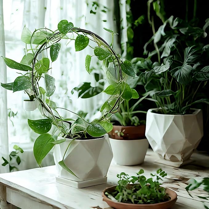 - Trellis for Climbing Plants: Simply insert the trellis into your plant pot, and your climbing plants will naturally start to wind around the circular iron frame. Over time, youโll enjoy a beautifully shaped, decorative plant that adds a touch of elegance to your home or garden.
