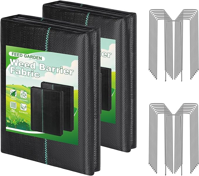 FEED GARDEN 4FT x 100FT Landscape Fabric Weed Barrier Fabric, Heavy Duty 3.2oz Ground Cover Geotextile Fabric for Gardening, with 30 U-Shaped Stakes (2 Pack 4x50FT)