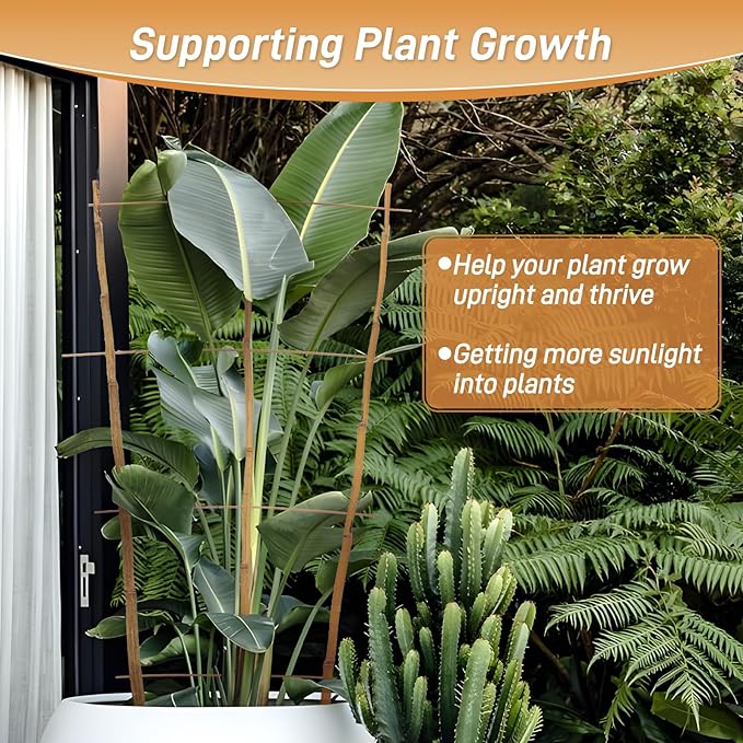 - 【Natural Bamboo】Each bamboo stalk is completely natural, carefully selected, and treated through smoking. Assembled manually, its ladder-like design provides ample space for the growth of climbing plants.