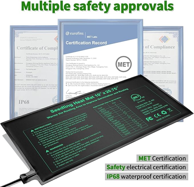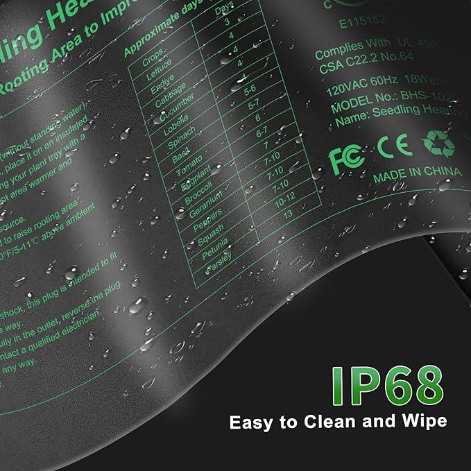 - Safety Assured:The heat mat for seedlings made of heavy duty PVC material that is durable and tear resistant; IMET/cMET certified; IP67 Waterproof approved;