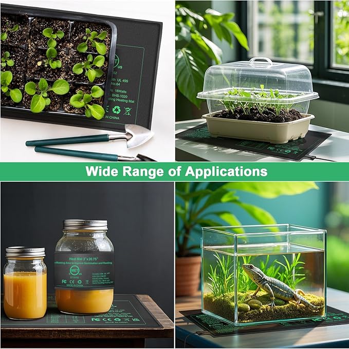 - Optimal Temperature & Multi-Use: Bestio heat mat creats optimal even and constant temperature 10℉-20℉ over ambient temperature, proven to be used as: 1.Seedling heat mat, promote seed germination and cutting propagation, increase the seedling and cutting successful rate. 2.Fermentation heat mat for home beer brewing, kombucha yogurt fermentation etc. 3.Reptile heat mat, improve the live conditon of reptiles.