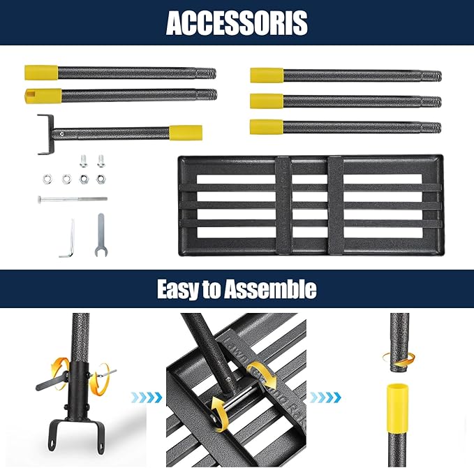 - 1️⃣ Industrial Grade Construction: The poles of our lawn leveling rake is forged from 1.1 mm diameter steel with a powder-coated finish that can withstand over 300 pounds of pressure. The corrosion-resistant treatment ensures a 5x longer life than plastic rakes.