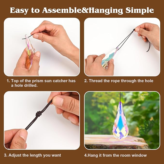 - Easy to hang with included string, allowing you to display these stunning rainbow makers in gardens, backyards, windows, porches, balconies, trees, plants,or even in your car's rearview mirror.