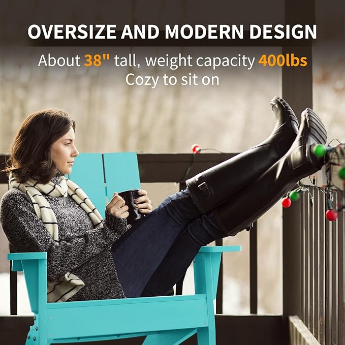MXIMU Modern Adirondack Chair Weather Resistant with Cup Holder Oversized Fire Pit Chairs Adorondic Plastic Outdoor Chairs for Firepit Area Seating (Aruba)