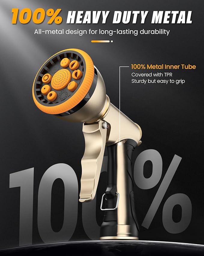 - FULL ZINC ALLOY MATERIAL: This heavy duty water hose nozzle body is made of 100% zinc alloy, durable, no rust, no corrosion, no wear. It can avoid damage from drops and last longer than fragile plastic or aluminum nozzles. Durable and reliable for long-time use.