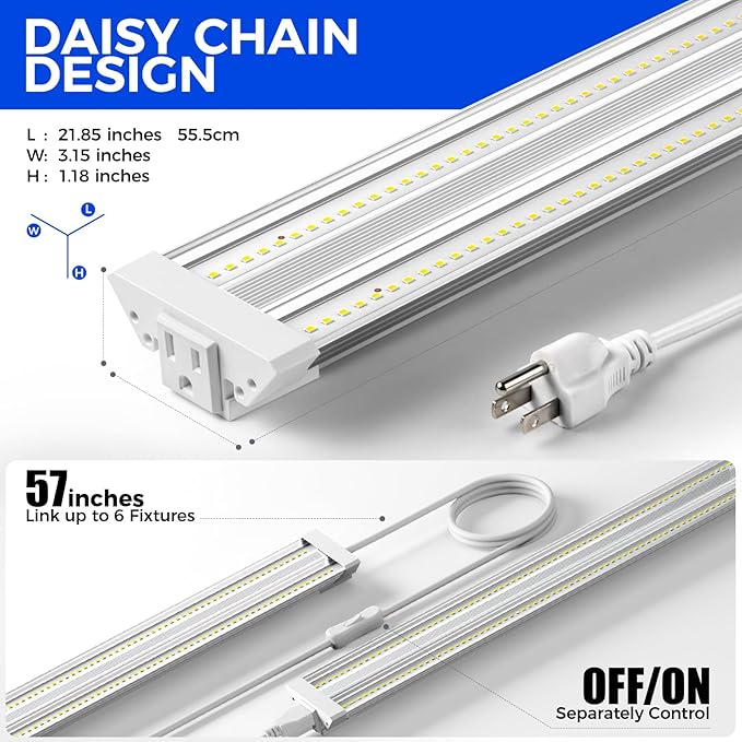 - Easy Installations & Linkable Design: The Barrina TX36 full spectrum grow light supports hanging and surface mounting. With chains, hooks, anchors, cable ties, and clips, installation is quick and easy. Link up to 6 lights with 57 inches cords and individual on/off switches, ensuring comprehensive light coverage for your indoor vegetable garden