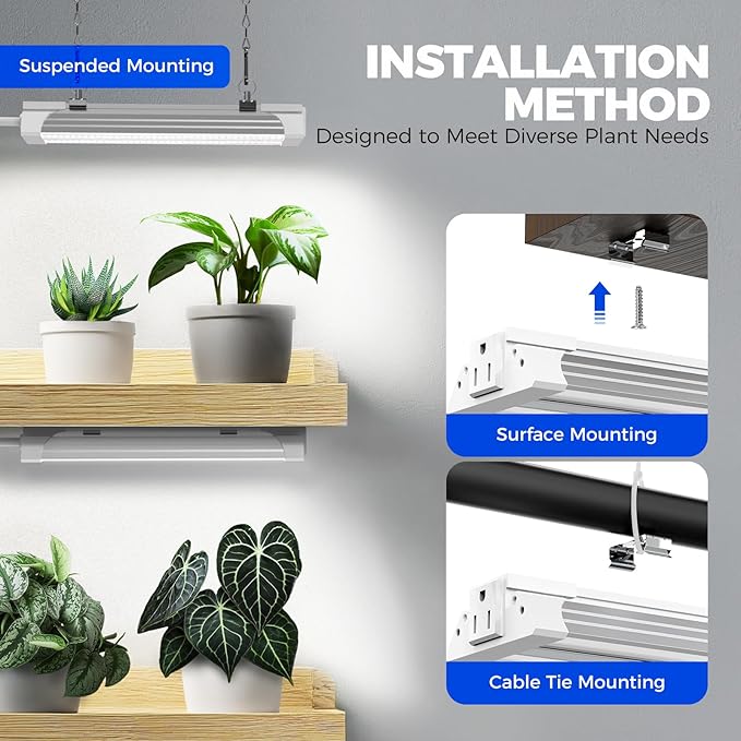 - Heat Dissipation & Wide Application: The indoor grow lights feature an aluminum housing, providing excellent heat dissipation and extending LED lifespan. Perfect for plant grow tents, plant grow shelves, seedling starting, hydroponic rooms, kitchens, and indoor windowsills. Accommodating different planting needs to help your plants thrive anywhere