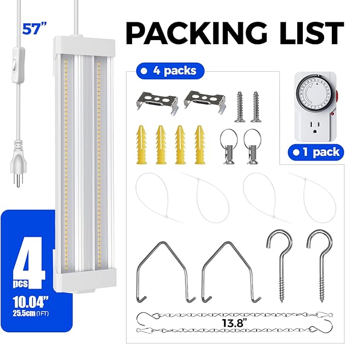- Easy Installations & Linkable Design: The Barrina TX18 full spectrum grow light supports hanging and surface mounting. With chains, hooks, anchors, cable ties, and clips, installation is quick and easy. Link up to 6 lights with 57 inches cords and individual on/off switches, ensuring comprehensive light coverage for your indoor vegetable garden