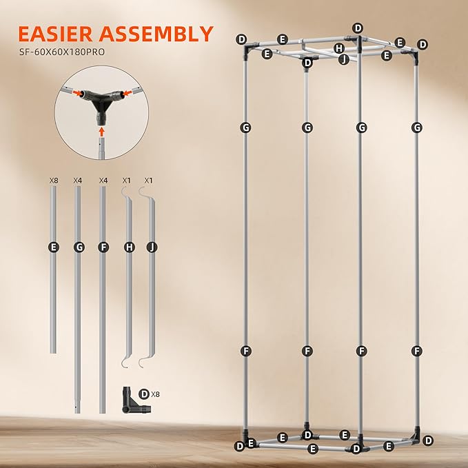 - Effortless Assembly: Spider Farmer grow tent comes with sturdy metal support poles and durable connectors, allowing for quick and tool-free assembly. It's easy to set up and take down, saving your time and effort while ensuring a stable structure for indoor garden