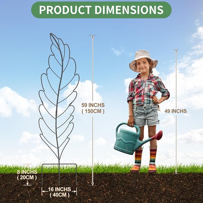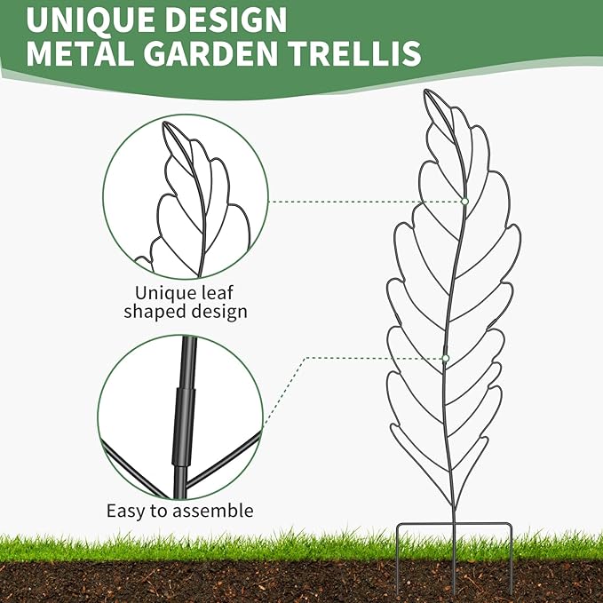 SUNYRISY 3Pack Leaf Metal Garden Trellis for Climbing Plants Outdoor, Metal Plant Trellis for Flowers Tomato Cucumber Rose Vegetable Support Garden Decoration, Black