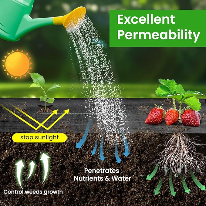 - ๐๐ซ๐จ๐ฆ๐จ๐ญ๐ ๐๐จ๐ข๐ฅ ๐๐๐ฆ๐ฉ๐๐ซ๐๐ญ๐ฎ๐ซ๐ ๐๐ญ๐๐๐ข๐ฅ๐ข๐ญ๐ฒ: Our weed barrier fabric helps to maintain soil temperatures and reduce temperature fluctuations, contributing to healthy plant growth in extreme weather conditions. Grass proof cloth also reduces water evaporation, keeping the soil moist and saving water by reducing the frequency of watering