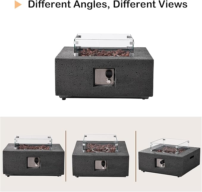 - Unique Fireplace: It's like having a fireplace wherever you want it! The low profile of this elegant fire table just beckons you to gather round it and tell stories. Clean burning propane flame provides soothing warmth with electronic ignition, safety valve for easy start, gentle lighting and a centerpiece for many outdoor evenings worth remembering.