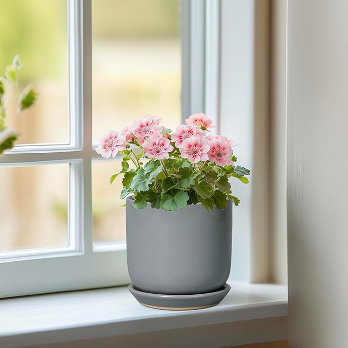 Ceramic Plant Pot 5 Inch - Modern Succulent Planter for Outdoor Indoor Plants with Drainage Hole and Saucer, Modern Home Decor, Gray