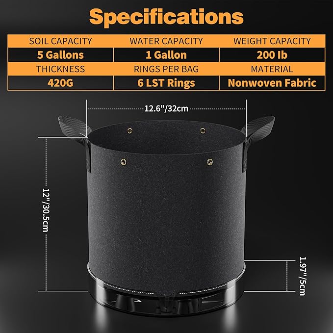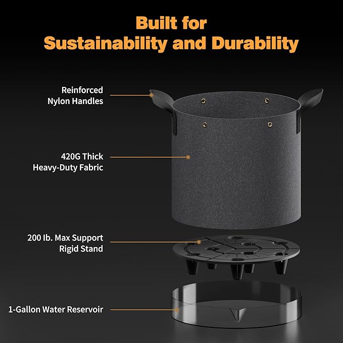 - Sturdy Fabric Material: Crafted 420G thickened nonwoven fabric with reinforced stitching nylon handles, PP rigid stand, PVC water reservoir and BPA-free, these heavy-duty fabric planters are sustainable and durable. Easily lift and move them without deformation
