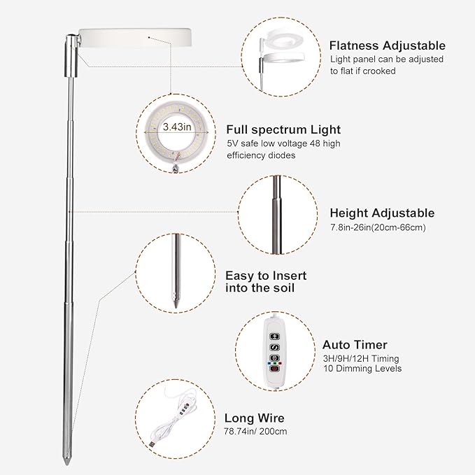 - π Space-Saving Adjustable Height - Telescopic arm (8"-26") fits tabletop planters, shelf gardens, or hanging pots, positioning the grow light at ideal PAR distance for each plant type