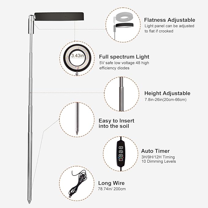 - π Space-Saving Adjustable Height - Telescopic arm (8"-26") fits tabletop planters, shelf gardens, or hanging pots, positioning the grow light at ideal PAR distance for each plant type