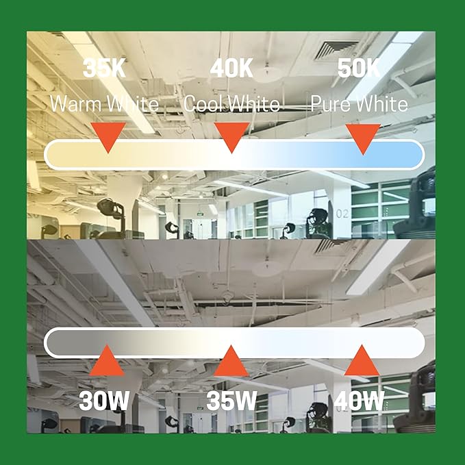 - 【CCT Tunable Option】 LED Shop Light for Garage has three color temperature adjustable 3500K, 4000K & 5000K andWattage Tunable 25W/30W/40W,bringing you a different visual experience.