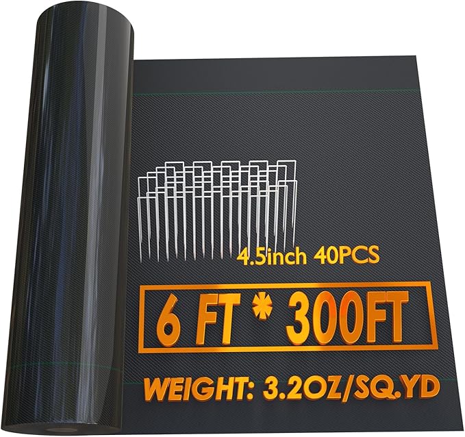 6 Size Weed Barrier Landscape Fabric Heavy Duty Gardening Weed Control Mat,Woven Weed Cloth Geotextile Fabric for Landscaping Driveway Farm Greenhouse (6x300FT)