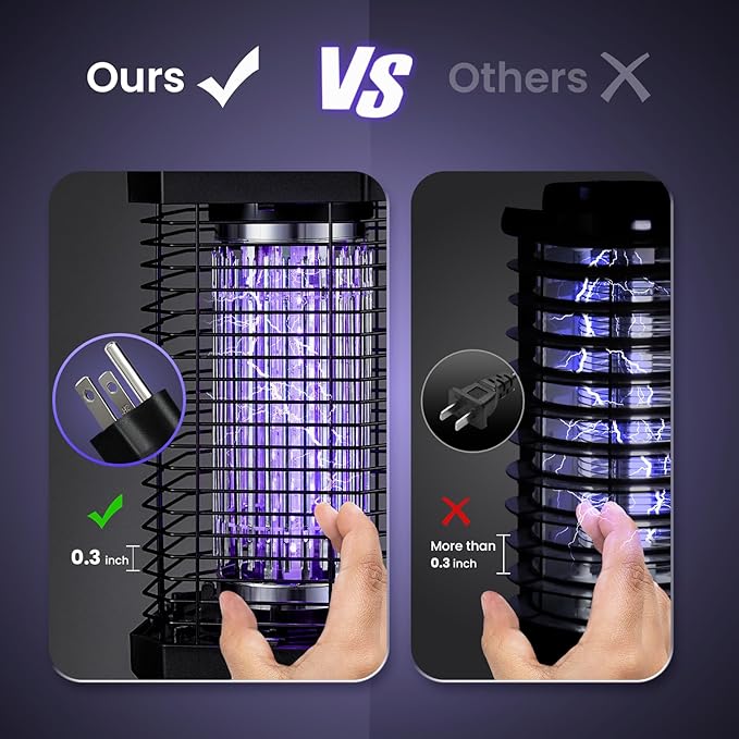 - Instant 2800V Shock & Dual-Chip LED Attraction: Eliminate mosquitoes, flies, and bugs instantly with 2800V high-voltage grids and dual-chip LED lamps which could emit 365nm & 395nm wavelengths precisely attract mosquitoes and bugs. This LED bug zapper indoor/outdoor scientifically lures pests through 2 kinds of UV wavelengths proven to mimic human body heat, ensuring precision attraction for mosquito killer efficiency.